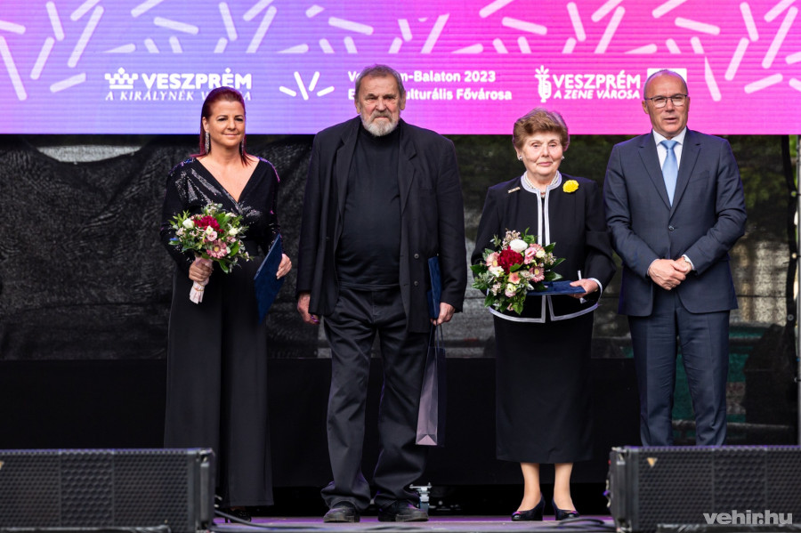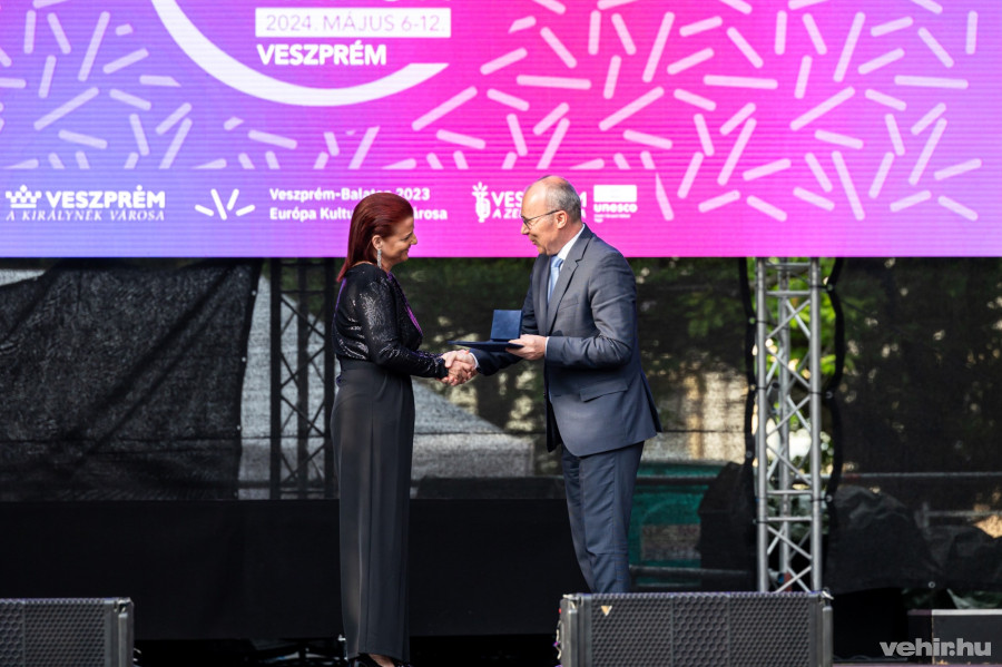 Az ünnepélyes gondolatokat a díjátadás követte, elsőként Kellerné Egresi Zsuzsannát szólították a színpadra, a Veszprémi Petőfi Színház kreatív menedzser-igazgatóhelyettesét: