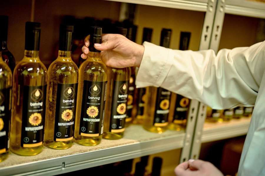 A vállalkozó szellemet volt honnan örökölni. Behring Balázsnak már az apai nagyapja? Behring János is foglalkozott olajütéssel: 1946-ban egy budapesti társával kezdték még Enyingen, vállalkozásukat azonban rövid időn belül államosították, a nagypapa pedig Balatonalmádiba költözött. Fia, Behring Ferenc már itt, egy Papkeszin található bérleményben vágott bele a tevékenységbe ’93-ban és egészen 2017-ig folytatta, amikor is betegsége miatt be kellett rekesztenie az olajgyártást. Balázs aztán tavalyelőtt döntött úgy, hogy újra megnyitja az üzemet: a kezdetektől, huszonéves kora óta besegített a munkába, 2015-ben pedig az épületet is sikerült megvásárolnia, így semmi nem állta útját az örökség továbbvitelének.