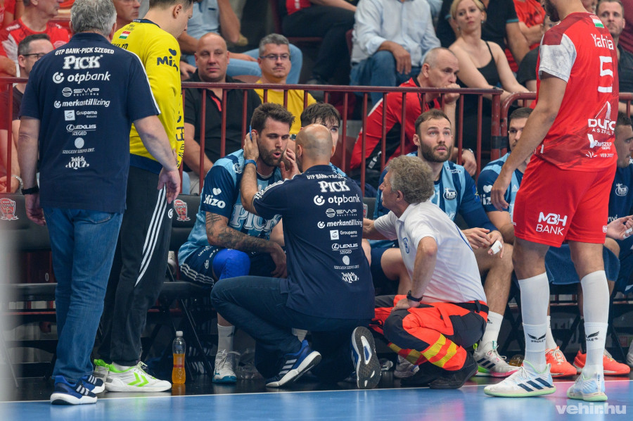 Bombac akkor sérült meg, amikor a hetedik percben összeütközött a veszprémi Ligetvári Patrikkal. A játékvezetők a videobírós visszajátszás megtekintését követően belemenés miatt szabaddobást ítéltek a házigazda bakonyiak javára.