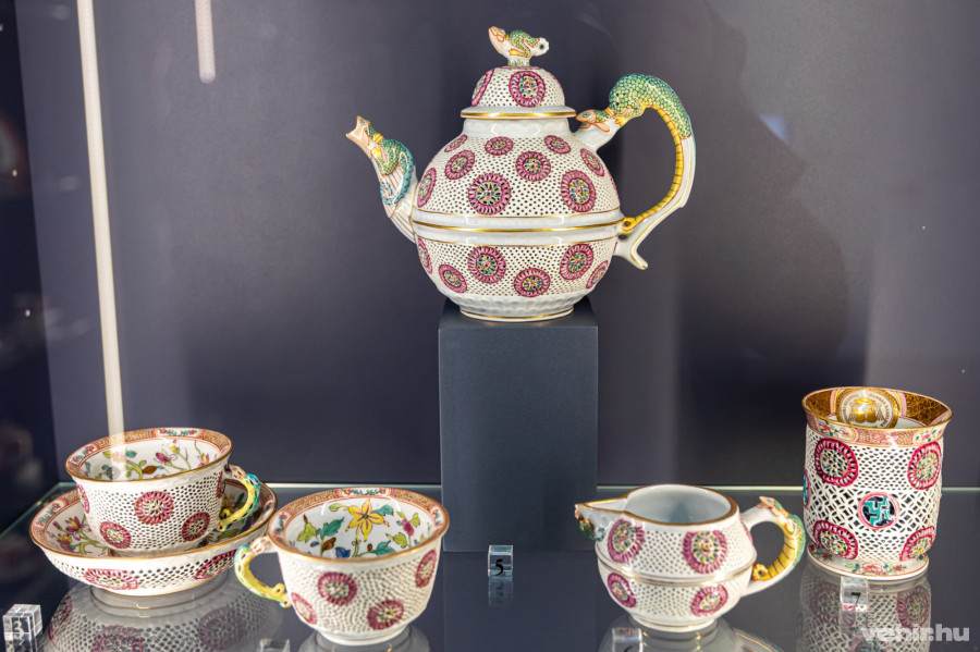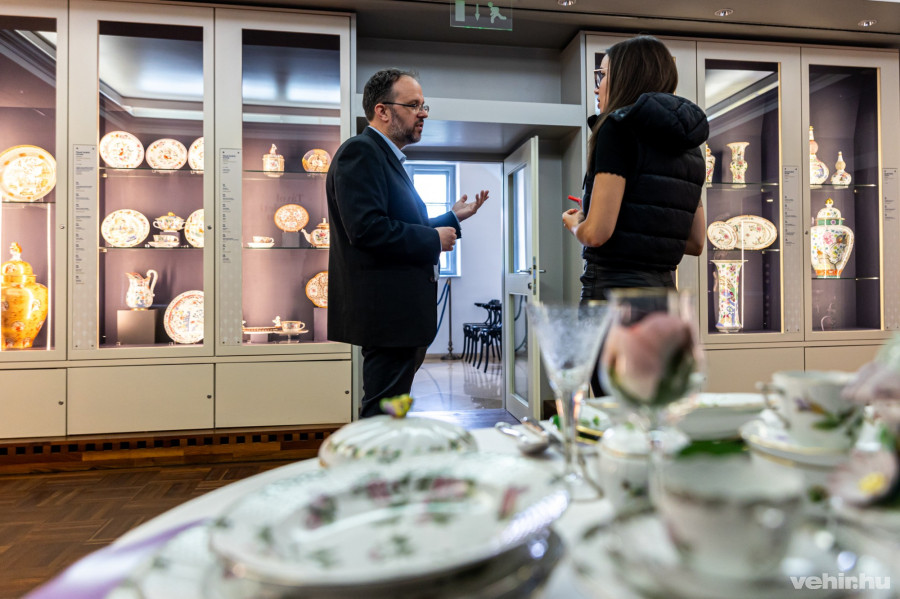 Szűts otthonosan mutatta meg a tárlat legérdekesebb pontjait, így a húszliteres, Vörösmarty idézettel ellátott porcelánkulacsot is, amely Ferenc József ajándéka volt. De ugyanilyen megdöbbentő látvány a parlamentet ábrázoló porcelán alkotás, amelynek tetején még a vörös csillag „tündököl”… Az Országház vázát 1954 tavaszán az Iparművészeti Múzeumban mutatták be, és a manufaktúra 115. évfordulójának tiszteletére készítették. Az alkotás igazi kihívás volt készítőjének, így több hónapig is eltartott a munka.