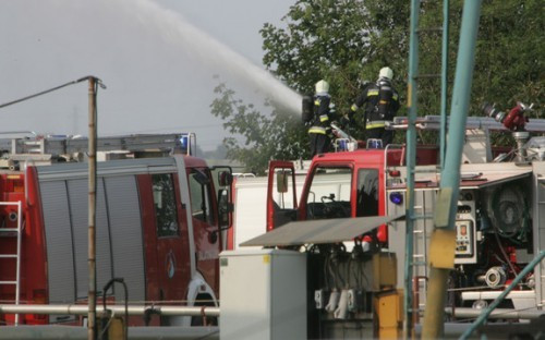 A Fűzfőgyártelepi veszélyes hulladékégető udvarán álló oldószeres hordók gyulladtak ki - a nagy hőség miatt-, azok idézték elő a robbanásszerű hangokat. A lakosság nincs közvetlen veszélyben. Úgy tudjuk, egy tűzoltó könnyebb égési sérüléseket szenvedett.