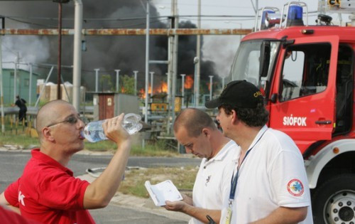 Bakos György, a megyei katasztrófavédelmi igazgatóság sajtófőnöke elmondta, néhány vastartály is begyulladt, így vegyszermaradékkal teli füst miatt folyamatosan mérik a levegő gázösszetételét.