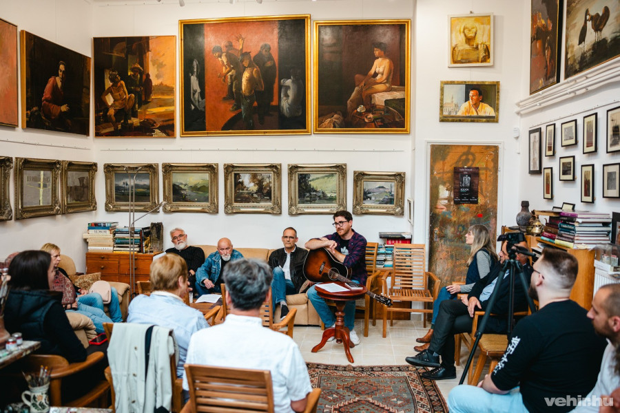Az est további részében szóba került a kortárs irodalom hatása, hiszen Ricsit számos mai költő munkássága inspirálta. A beszélgetés közben az éppen aktuálisan taglalt verseket a szerző gitár kíséretében elénekelte, mosolygós pillanatokat okozva ezzel a közönségnek. Mint kiderült, Ricsi életében először a költészet volt, s közben társult hozzá a zenei kíséret.