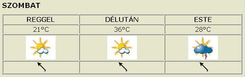 Az időjárás-változás jeleként egyre magasabbra törő gomolyfelhők jelennek meg az égen. A hidegfront várhatóan éjfél környékén éri el a várost, előtte azonban már kialakulnak záporok, zivatarok. A nagy érdeklődésre való tekintettel a vmeteo.hu oldalon folyamatosan nyomon követjük az eseményeket és a kialakult zivatargócok útvonalát. A felfrissülésig még egy hőségnapot el kell viselnünk, vasárnap és hétfőn már csak 25°C körüli maximumokat mérünk.