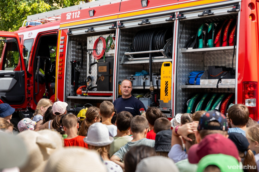 Sikerült, hiszen, amikor délelőtt szirénázva begördült egy tűzoltóautó az iskola udvarára, az összes gyermek lelkesen körbevette a nagy autót. A Veszprém Megyei Katasztrófavédelmi Igazgatóság tűzoltói pedig hasznos tudnivalókat adtak át a tűzvédelemről a gyermekeknek, akik aztán fel is mászhattak az autóra és kívül-belül megismerhették annak működését.