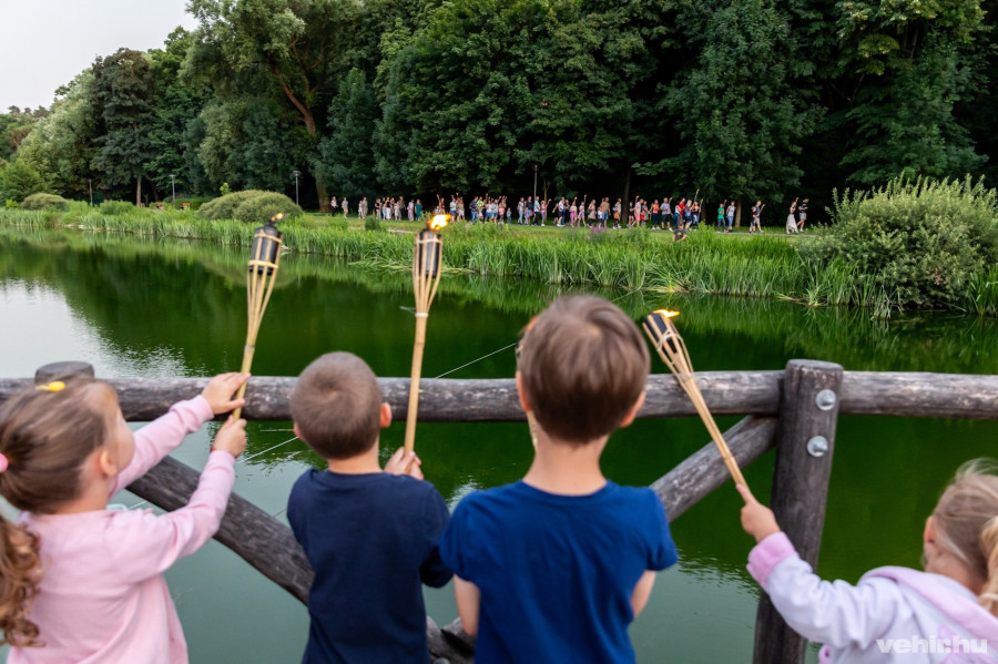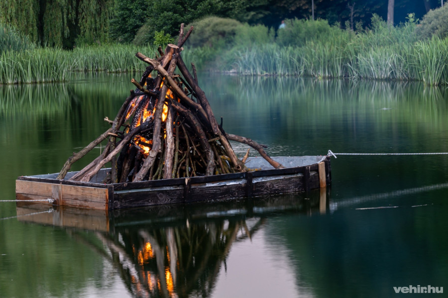 A nap fénypontja, a hagyományos a máglyaégetés volt a csónakban a Séd-patak táplálta tavon.