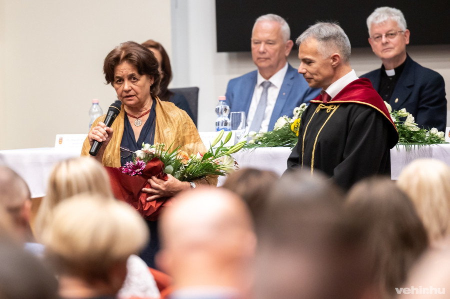 Végül Sebestyén József, a Veszprémi Érseki Főiskola rektora tartotta meg ünnepi beszédét. Részletesen is beszámolt az eddig elért teljesítményről, az évről-évre nagyobb sikereket felmutató eredményekről. A 2023/2024-es tanévben ötvenkét hallgató szerzett oklevelet, kilencen alapkézési, és negyvenhárman szakirányú továbbképzési szakon. A rektor kiemelte, komplex fejlesztésben gondolkodtak, amely a társadalomban való jelenlétüket támogatja.