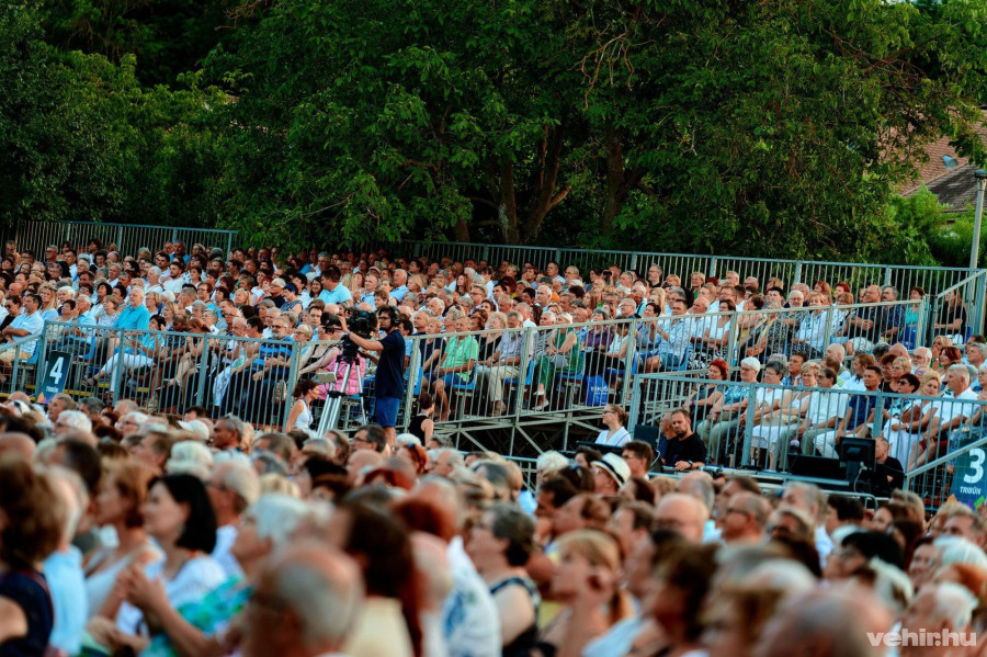 A beengedésnél hemzsegő tömeg, izgatott, kíváncsi tekintetek mindenütt, köztük kiszúrom Miklósa Erikát, Kossuth-díjas operaénekest, aki együtt lépett fel José Curával az említett 2004-es VeszprémFestes koncerten, konstatálom, hogy az esten nem csak a színpadon lesznek tehát legendák.