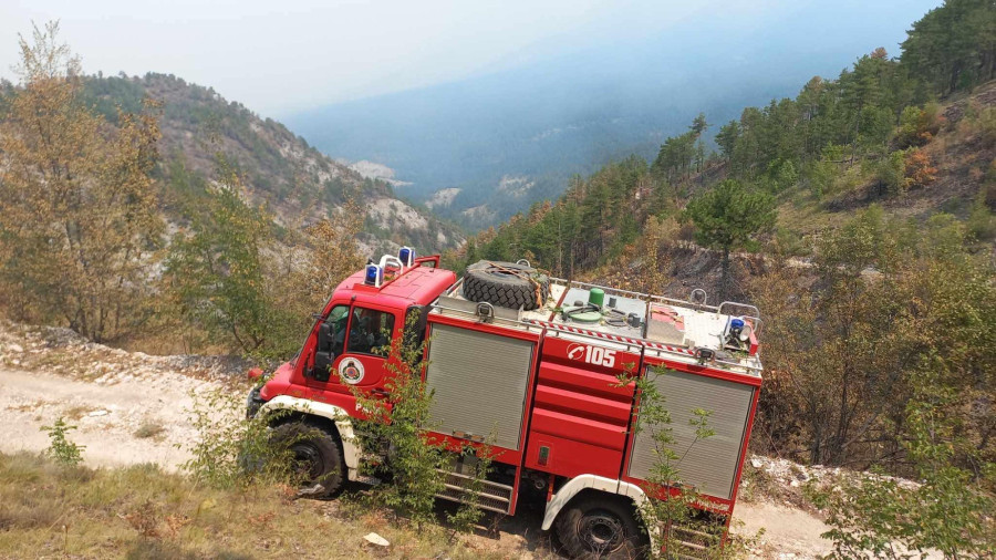 Veszprém vármegyéből a pápai hivatásos tűzoltó-parancsnokság erdőtüzek oltására alkalmas Mercedes-Unimog járműve segít a területen. Az erdőszeren két gépjárművezető, emellett két beosztott tűzoltó dolgozik a balkáni országban.