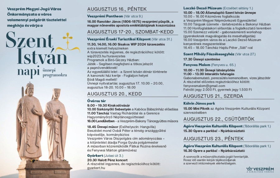 Kirakodóvásár, múzeumi programok, kenyérszentelés, szentmise: ezekkel a programokkal köszöntik a nemzeti ünnepet Veszprémben.