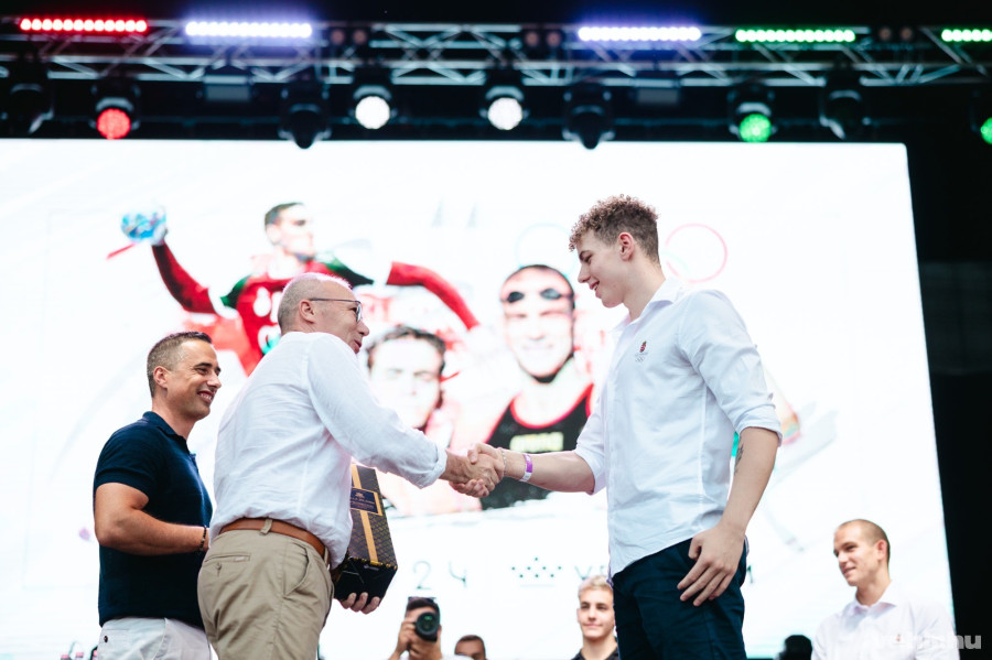 „Én csak úszni akartam, mert szeretem az úszást” – mondta a maga szerénységével Rasovszky Kristóf, a párizsi olimpia 10 kilométeres nyílt vízi úszásában aranyérmes veszprémi sportolója a Gyárkertben, amikor a műsorvezető, az M4 Sport riportere, Molnár Mátyás kezdeti ambícióiról és álmairól faggatta.