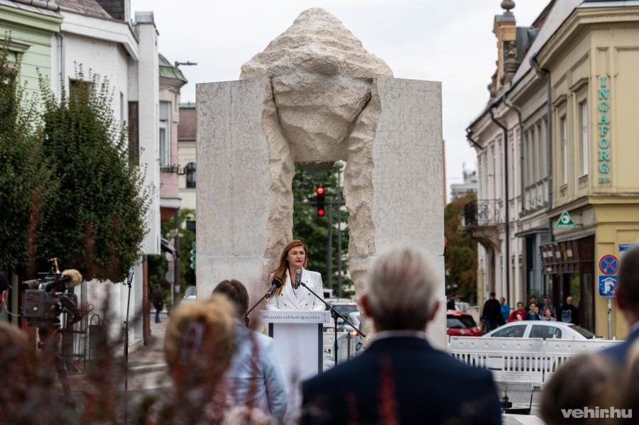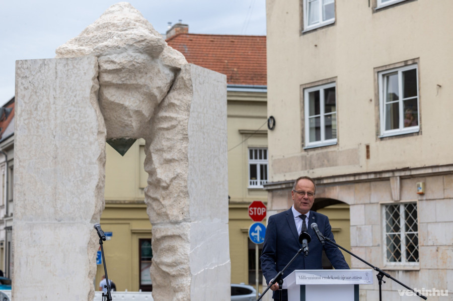 Ez a folyamat ért révbe csütörtök délután, amikor hivatalos ünnepség keretében átadták a szobrot. Az eseményen elsőként Navracsics Tibor, közigazgatási és területfejlesztési miniszter szólt a megjelentekhez. Ő úgy fogalmazott, a millennium egy új fejezetet jelentett anno az emberiség történetében, viszont veszprémi szempontból a mostani, 2020-as évek is felérnek egy korszakváltással, utalva az EKF eredményeire, ami merőben átrajzolta és új szintre emelte a várost.