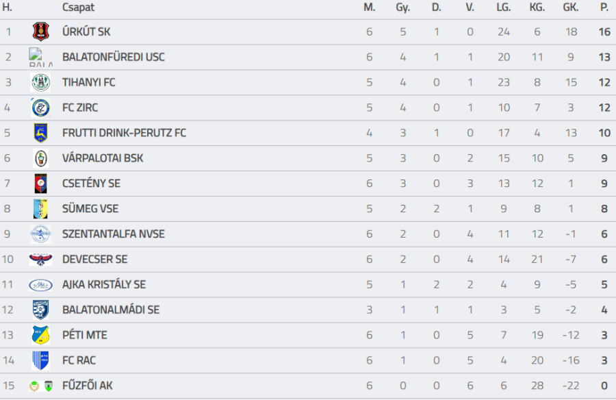 A korábbi hat mérkőzés során egyaránt vereséget szenvedő Fűzfői AK pedig „szabadnapos” lesz.