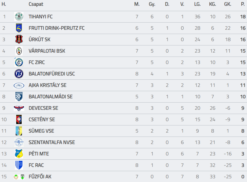 Az Ajka Kristály SE szintén otthon diadalmaskodott: a hazaiak magabiztos, 2-0-s sikert arattak az FC Zirc ellen. A Devecser SE és a Fűzfői AK összecsapása szintén sok gólt hozott: kisebb meglepetésre a Fűzfő idei hetedik mérkőzésén is kikapott, ezúttal 5-2-re.