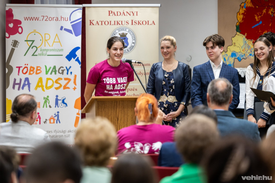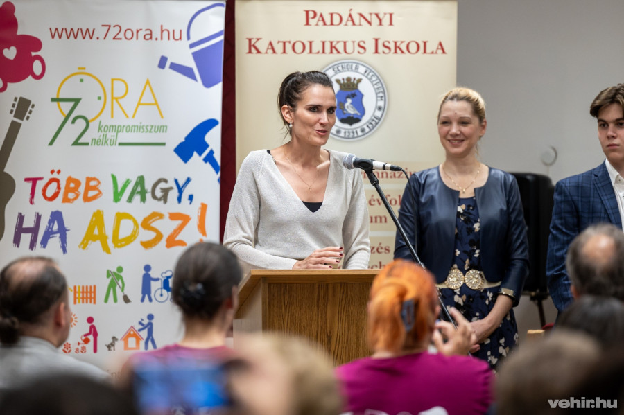 Kovács-Czopf Ágnes, a 72 óra kompromisszum nélkül koordinátora köszöntötte elsőként a megjelenteket, s rögtön egy személyes történeten keresztül mutatta be, hogyan talált rá egykor az önkéntesség. Mint fogalmazott, egy gyermekkori élmény vezette rá arra, hogy jó adni: egy esős pécsi napon egy kislány a zebrán akart átkelni, de piros volt a lámpa. Az eső erősen zuhogott, mígnem egy idős úr az általános iskolás kislány fölé tartotta esernyőjét. Ő volt Kovács-Czopf Ágnes, aki ekkor rádöbbent, milyen jó kapni, milyen jó lehet tehát adni is. Ágnes azóta önkénteskedik, bízik abban, hogy már ő is sok esernyőt tartott mások fölé.