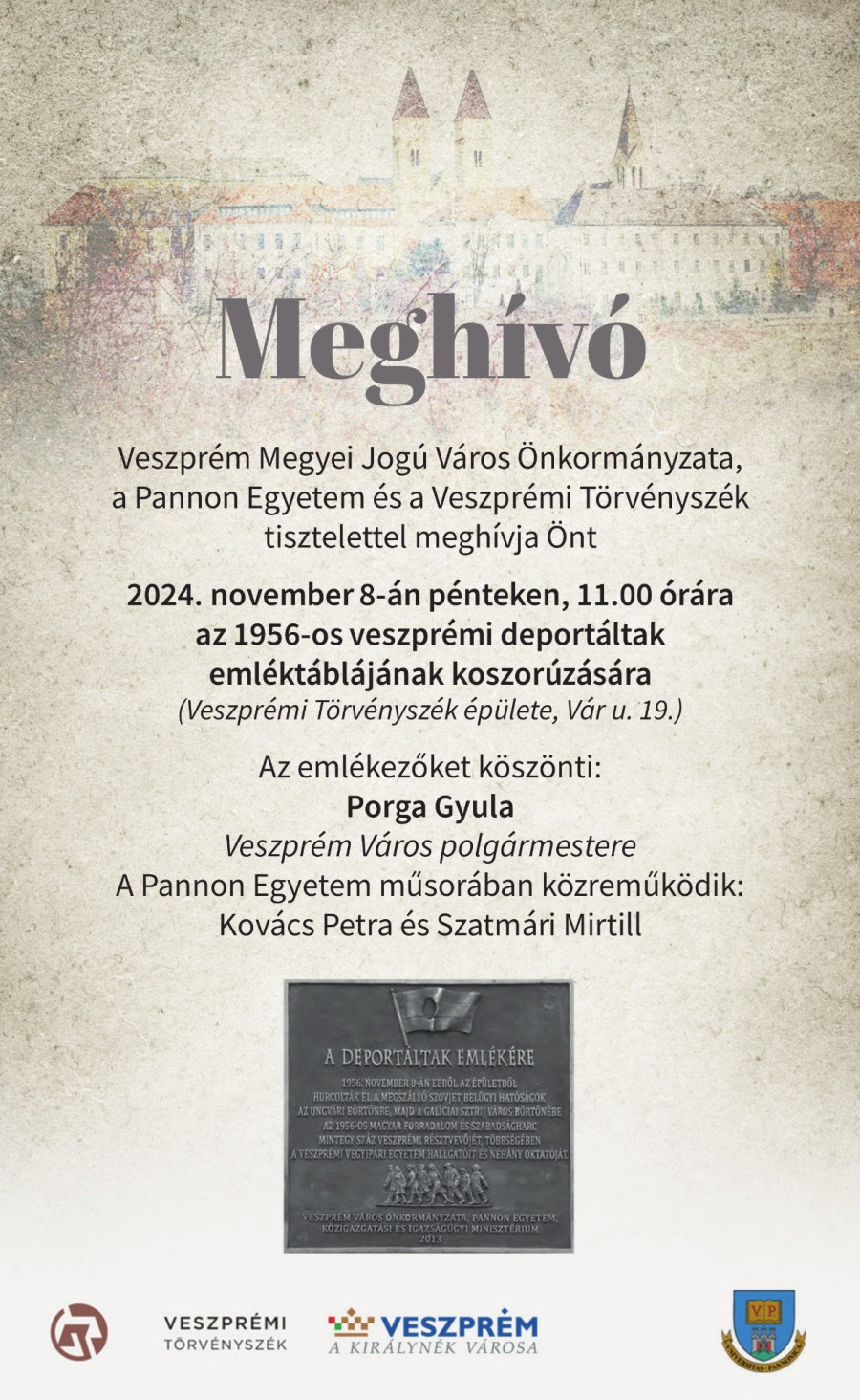 Meghívó az 1956-os deportáltak emléktáblájának koszorúzására