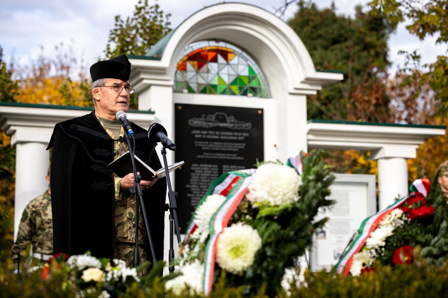 A rövid ünnepségen Szabó Gyula alezredes, tábori lelkész mondott imádságot. „Halottak napja közeledtével kegyelettel állunk meg itt, a temető csendjében, emlékezve honfitársainkra, bajtársainkra, akik az első világháborúban áldozták életüket e hazáért” – kezdte beszédét az alezredes. Mint mondta: látni kell, milyen szent, igaz, az élet feláldozására is érdemes dolog lebegett a hősök szeme előtt: a haza, a nemzet, a család, mindazok, akiket szerettek és akik őket szerették. Így szemlélve őket példájuk minket is alakít.