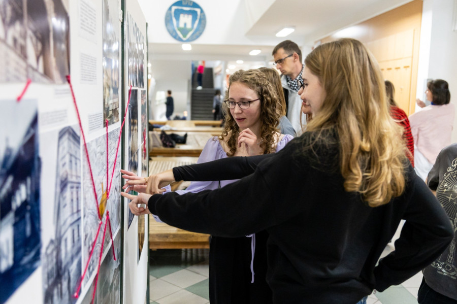 A kiállítást Márkusné Vörös Hajnalka, az egyesület elnöke nyitotta meg, aki rámutatott: a veszprémi zsidóság egykori élettere a mai iskolától néhány lépésnyire található, itt, a belvárosban éltek a prominens zsidó családok és itt működött az iskolájuk, valamint a két zsinagóga.
