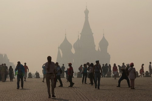 A szokásoshoz képest némileg visszaesett a autóforgalom, de semmiféle pánik nincs. Oroszország tiszti főorvosa már azt fontolgatja, hogy esetleg elhalasszák az iskolaév kezdetét is Moszkvában. A három nagy moszkvai repülőtér közül Seremetyevo - ahová a budapesti gépek érkeznek - délelőtt még menetrend szerint fogadta a járatokat, majd délutántól - akárcsak Vnukovo és Domogyedovo - az időjárás, az egyre csökkenő látótávolság függvényében engedélyezte a le- és felszállásokat.