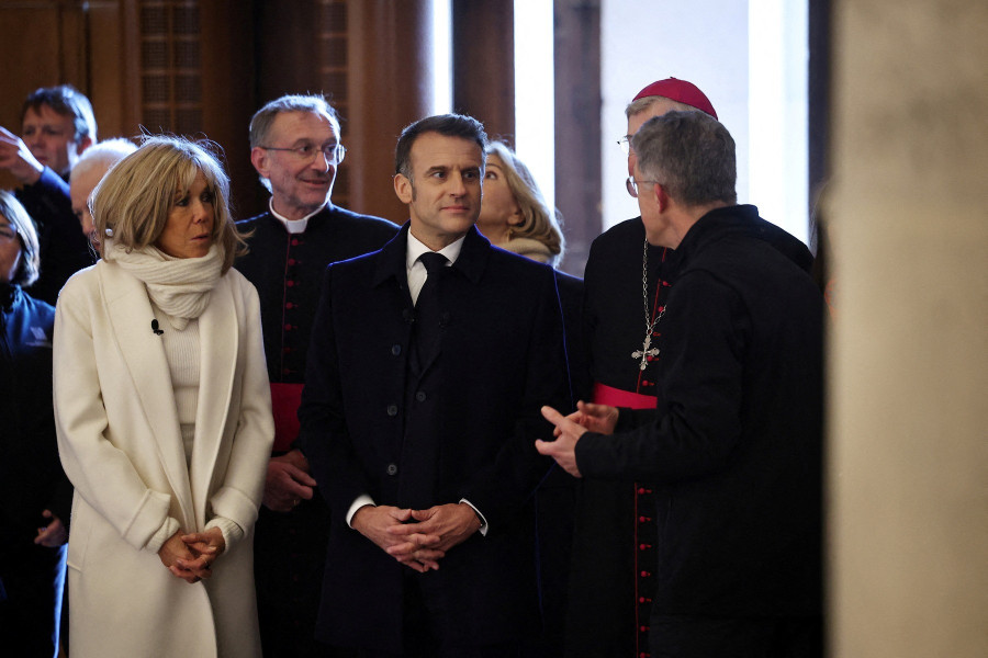 A francia államfő, aki november 29-én tett egy utolsó látogatást a helyszínen, december 7-én a katedrális előtt mondott beszédet, vasárnap pedig részt vesz a Notre-Dame-ban a tűzvész óta tartandó első misén is. Ez lesz az egy hétig tartó vallási ünnepségsorozat nyitánya.