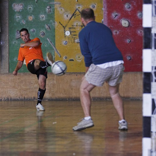A Stadion kispályás focitermének lelátója hézagos volt ugyan, de a hangulat fergeteges: ki dudával, ki sállal, felmatricázott pártlogókkal szurkolt a csapatának.