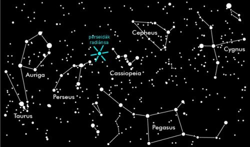 A Perseida-meteorraj radiánsának helyzete a csillagképekhez képest