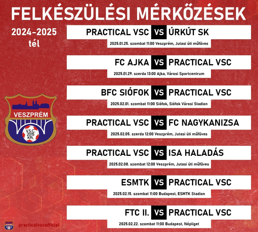 A veszprémi labdarúgócsapat téli felkészülése már javában zajlik. Imrik László együttese az elmúlt napokban előbb a Veszprém vármegyei élvonalban szereplő Úrkút együttesével, majd az NB II-es Ajka vendégeként vívott felkészülési mérkőzést.
