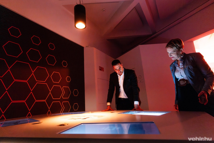 Az installációs teret a földszinten a hagyomány és az innováció izgalmas fúziójára hozták létre. A sajtóbejáráson Veszprém történelme elevenedett meg itt, de ahogy Markovits Alíz, az üzemeltető VEB 2023 Zrt. vezérigazgatója elmondta, ez a helyszín alkalmas lesz arra is, hogy akár különböző társadalmi témákat boncolgassanak az audiovizualítás eszközeivel, például azt, hogy mitől lesz élhető egy város.