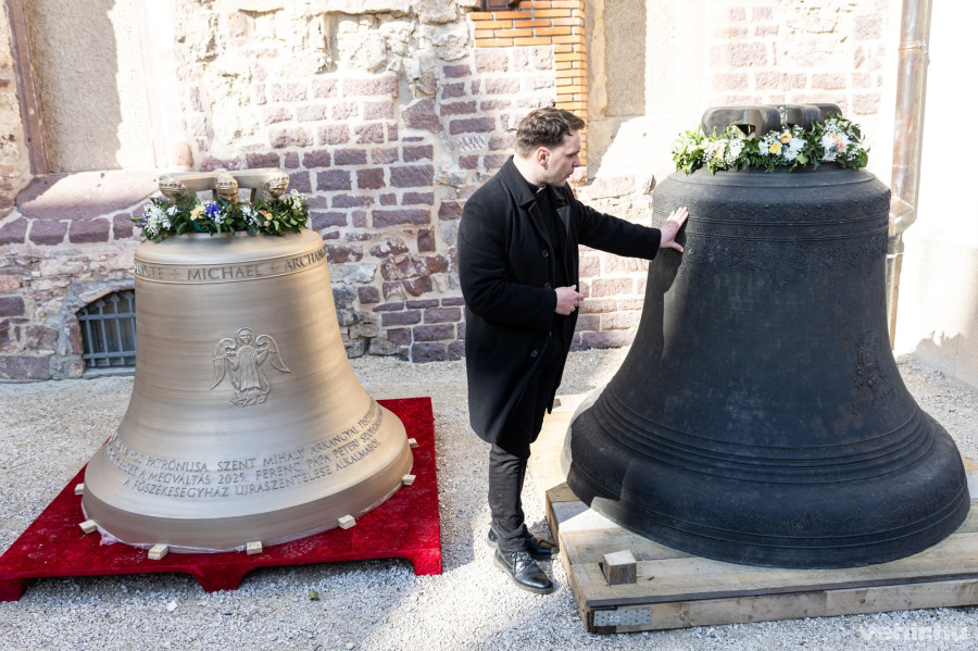 Joggal merül fel a kérdés, hogy ha új harangok is készültek a legnagyobb régi mellé, mi lesz azokkal, amik eddig a társai voltak. Kulcsár Dávid atya elmondta, ezeket olyan templomoknak ajándékozzák, ahol a hangzásba beleillenek, Veszprémbe pedig öt, pontosan összehangolt harang érkezett meg, amelyek mindegyike valamelyik ideköthető szent vagy boldog nevét viseli.