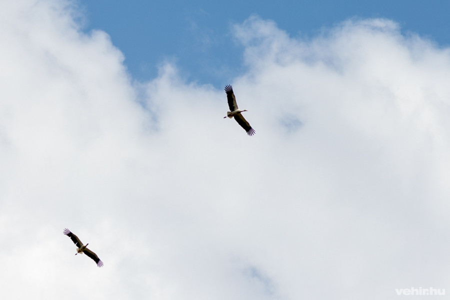 Szerdán délelőtt a Historia kertből sikerült fotós kollégánknak lefotózni a park fölött békésen keringő gólyákat.