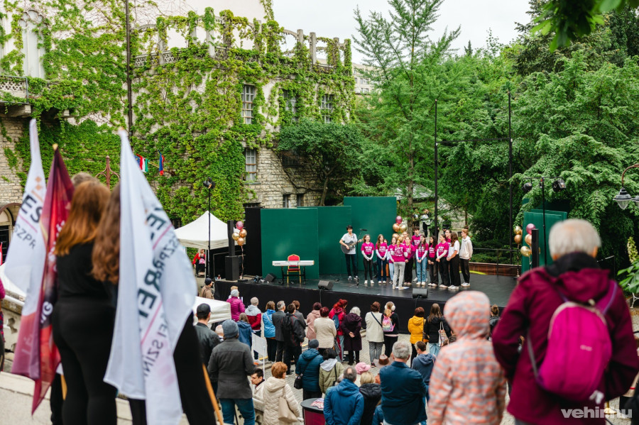 A fesztivál aztán péntek délután a hivatalos megnyitóval folytatódott, ami a hűvös idő ellenére sokakat csábított ki a teátrum előtti térre, ahol először a Padányi katolikus iskola kórusa, majd a PetőfIfi Akadémia növendékeinek zászlóceremóniája hangolta a közönséget a későbbi programokra.