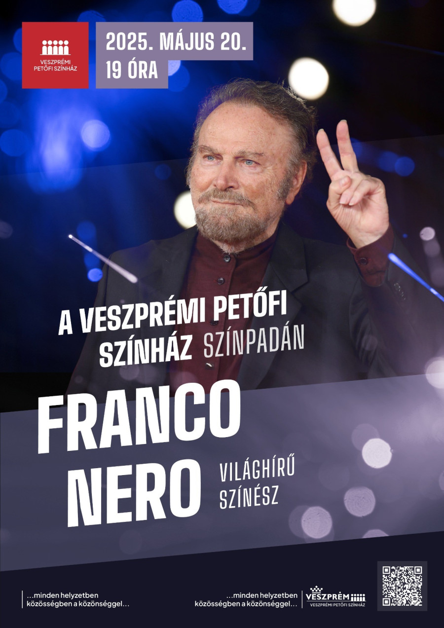 A szenzációszámba menő látogatásának elsődleges célja, hogy május 20-án, kedden, este 19 órától zenés életút-beszélgetésen vegyen részt a Veszprémi Petőfi Színházban. A közönségnek tehát abban a különleges, soha vissza nem térő élményben lehet része, hogy élőben láthatja Franco Nerót. Jó eséllyel eddig nem hallott érdekességek is elhangzanak majd, hiszen Kellerné Egresi Zsuzsanna, a színház igazgatóhelyettese és kreatív vezetője elsősorban nem a szakmai múltjáról, hanem a személyes megéléseiről, az életéről kérdezi majd.