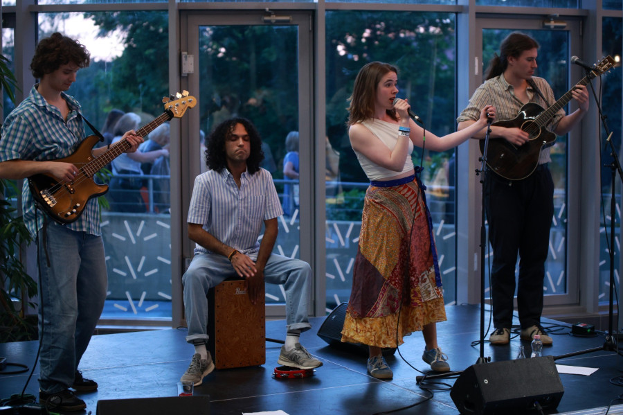 Ezt követően a Hangvilla kávézójában Lovas Juci énekes-dalszerző szólóprojektjéből indult Frász koncertet élvezhette a közönség. A formáció tagjai egy nyári zenetáborban ismerték meg egymást és 2023 ősze óta zenélnek együtt. Az alternatív popzene egy sokszínű válfaját képviselik, ahol a szellemes szövegek olykor R&B, funk és jazz elemeket tartalmazó bólogatós groove-okkal egészülnek ki, máskor pedig az ezredforduló hangzásvilágára emlékeztető pop-rockként szólalnak meg.