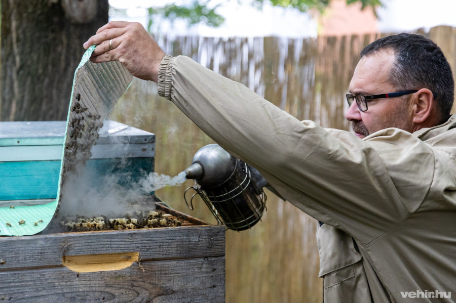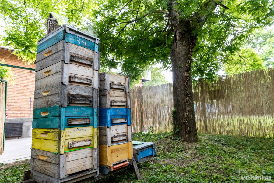A méhek valójában már három hete itt laknak, azóta pedig folyamatosan gyarapodik a mézmennyiség, amit Simon Péter, méhész, a Bakonynktár tulajdonosa meg is mutatott a helyszínen, amikor felnyitotta az egyik kaptárt. Ez az a vállalkozás, amit Péter társával, Csiza Erikával vezet, a mostani projekt vezetői pedig korábbi jó együttműködésükre alapozva őket kérték fel, hogy szakmailag koordinálják a városi méhészetet, azaz foglalkozzanak a két méhcsaláddal, akik úttörői lettek a veszprémi városi méhészetnek.