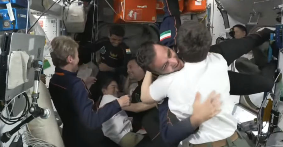 Néhány perccel magyar idő szerint fél három előtt az Axiom-4 küldetés legénysége – Peggy Whitson (USA), Shubhanshu Shukla (IND), Sławosz Uznański-Wiśniewski (POL) és Kapu Tibor (HUN) – átlebeghetett az űrhajóból a Nemzetközi Űrállomás fedélzetére, ahol az ott tartózkodó hét űrhajós (Anne McClain USA, Nichole Ayers USA, Kirill Peskov RUS, Takuya Onishi JAP, Jonny Kim USA, Sergey Ryzhikov RUS és Alexey Zubritsky RUS) köszöntötte az újonnan érkezőket.
