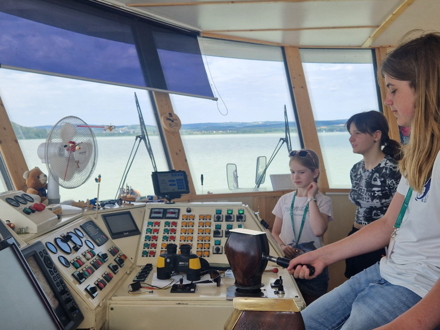 A Balatoni Hajózási Zrt. segítségével és támogatásával egy menetrend szerinti járattal Siófokra utaztak a gyerekek, ahol a kapitánytól érdekes információkhoz jutottak, a bátrabbak pedig kipróbálhatták, milyen érzés vezetni egy igazi hajót. Ezt követően a javítóbázison betekintést nyertek a hajózási technikus szakma kulisszái mögé.