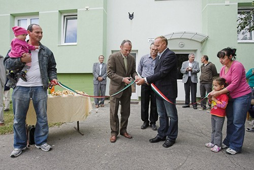 Igazi kerti-parti alakult ki péntek délután a Haszkovó utca 17. szám előtt: az ünnepélyes házavatón Molnár Ernő képviselő – akárcsak egy házigazda – igyekezett kiszolgálni a lakókat és a sajtó munkatársait is pogácsával, süteménnyel.