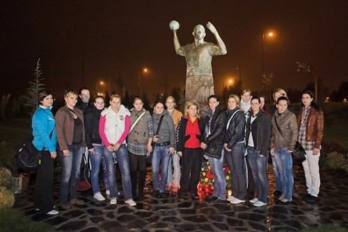 A találkozót követően Veszeliék koszorút helyeztek el Marian Cozma szobránál az aréna előtt.