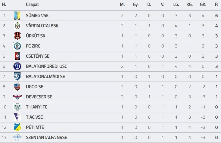 Veszprém vármegyei labdarúgó élvonal, a 2. forduló eredményei: