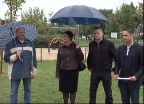 A Fiatalok Háza melletti téren, a Rózsa utcában, a már meglévő játékelemek mellé sporteszközök és mászófal is került, nem is szólva a megújult zöld környezetről – a képviselők, a borús idő ellenére, derűs kedvvel próbálták ki őket.