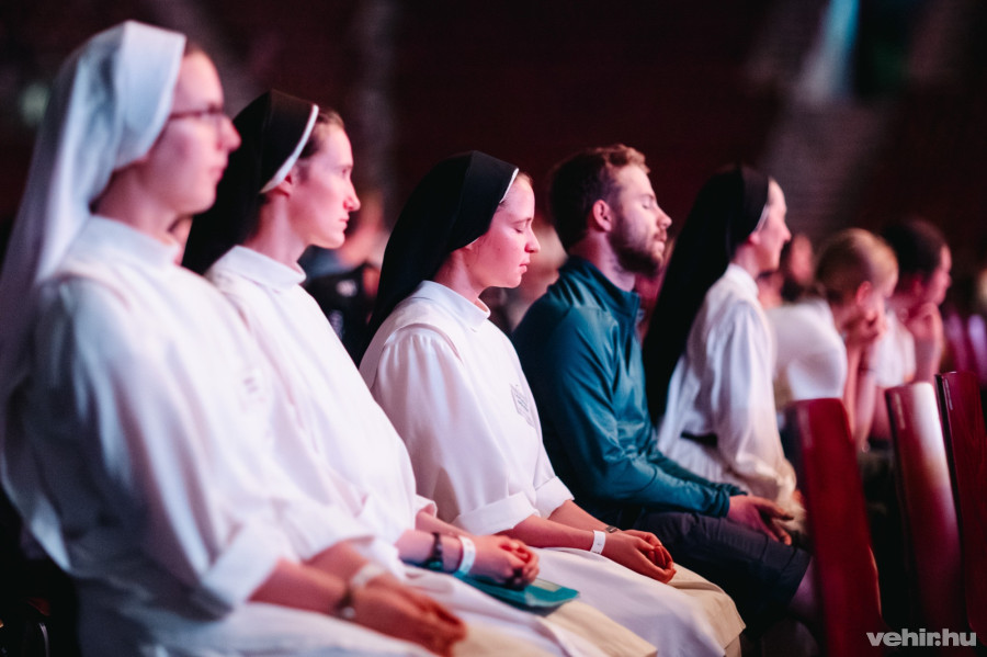 Este a boldoggá avatás helyszínén, a One Veszprém Arénában a Magdi-Fest ifjúsági találkozó és virrasztás keretén belül készültek éjszakába nyúlóan a szombati eseményre, imádsággal, dicsőítéssel, szentségimádással.