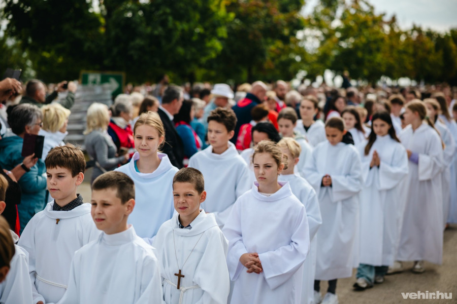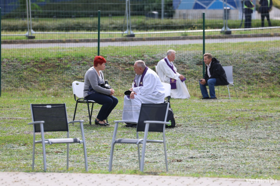 Több, mint tízezer hívő keresztényt várnak a Veszprém Aréna parkolójába a tizenegy órakor kezdődő szertartásra. Az embereknek több száz önkéntes segít az eligazításban. Jelenleg hűvös szél fúj, de az előrejelzések szerint eső nem várható.