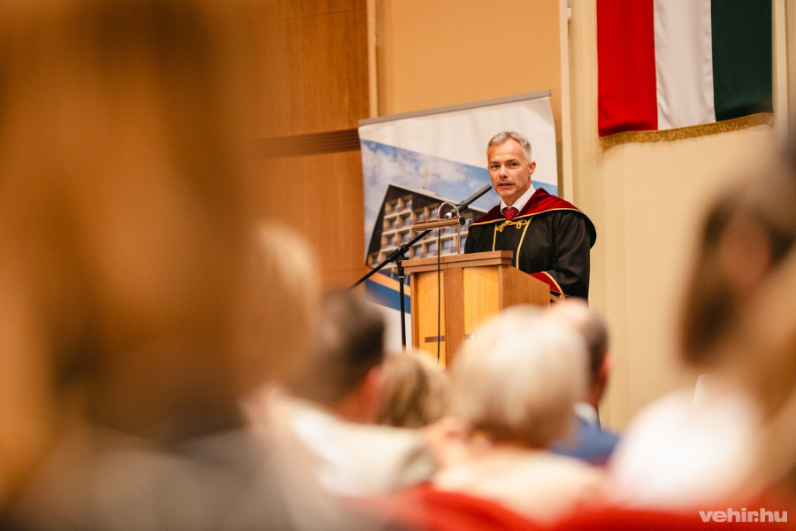 Az ünnepi beszédet dr. Sebestyén József, a főiskola rektora mondta. Felidézte az intézmény történetét, jogelődjét, valamint a stratégiai célokat, amelyek között 2020-ban megfogalmazódott az egészségügyi képzések elindítása. Az Oktatási Hivatal engedélyével idén indulhatott el az ápolás és betegellátás szak, amelyet a rektor történelmi jelentőségűnek nevezett a veszprémi felsőoktatásban.