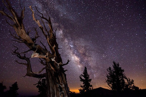 Tom Lowe győztes felvétele: egy elszáradt rókafark fenyő háttérben a Tejúttal