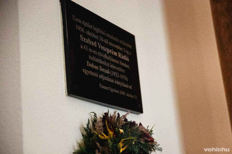 Az A épületben kezdődött az ünnep, ahol is Abonyi János megkoszorúzta Brusznyai Árpád emléktábláját, aki a forradalom mártírja lett. Németh Roland HÖK elnök az 1956-ban elhurcolt egyetemisták emléktáblájára helyezte el a koszorút. Felföldi Gábor, az intézmény kulturális referense közben narrálta a múltbéli történéseket, és felhívta a figyelmet arra, hogy az akkori Veszprémi Vegyipari Egyetemnek meghatározó szerepe volt a forradalmi történésekben.