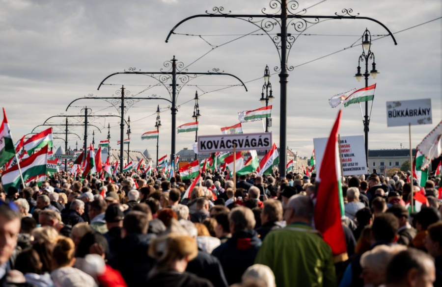 A kormányfő kijelentette: Magyarország a "brüsszeli háborús uszítók" útjában áll. "'56-ban tankokkal jöttek, ma pénzügyi szankciókkal. Ahogy akkor megtalálták a maguk pufajkásait, ma is megvannak a brüsszeli mesterterv slim fit szekértolói" - fogalmazott. Ugyanakkor jó hírnek nevezte, hogy "van választásunk". Olaszországot, Szlovákiát, Csehországot és Lengyelországot említve úgy értékelt: a béke hívei gyülekeznek, "velünk van az Egyesült Államok elnöke", az európai liberális elit lába alatt viszont "mozog a Föld".