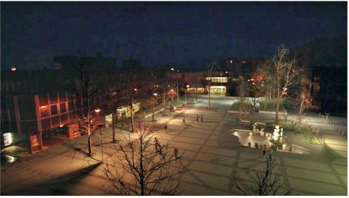 A posta előtti fásított tér