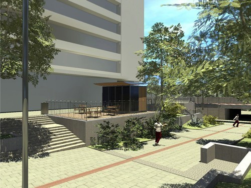 A Kossuth utcán, a húszemeletes alatti úgynevezett „lepény” épületegyüttes homlokzati megújításával, és egy lift kialakításával az épület külső megjelenése a közterületek minőségi megújításához illeszkedne.