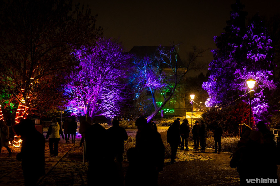 Mintha a havat befestették volna már a felhőkben, és sok apró színes kristály hullott volna az égből, olyan hatást keltett szombat este a Kolostorok és Kertek rendezvénytér a Veszprémvölgyben, ahol ekkor mutatták be azt a fényjátékot, ami egész decemberben itt marad.