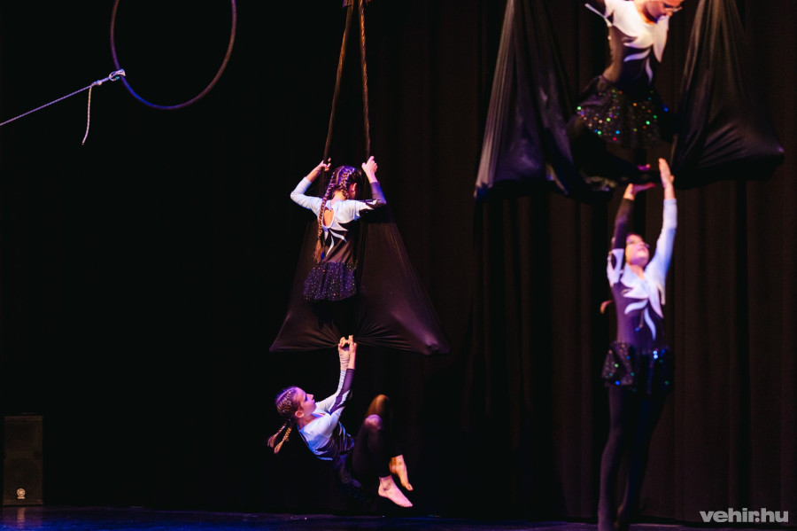 A Mamma mia és még több ABBA-sláger foglalta keretbe a veszprémi Légtorna és Légtánc Egyesület szombati gáláját az Agórában, de az igazán lényegeset produkciót nem a zenével biztosították, hanem a színpadon, pontosabban a színpad deszkái fölött selymen és karikákon bemutatott tánccal az egyesület fiatal tagjai.